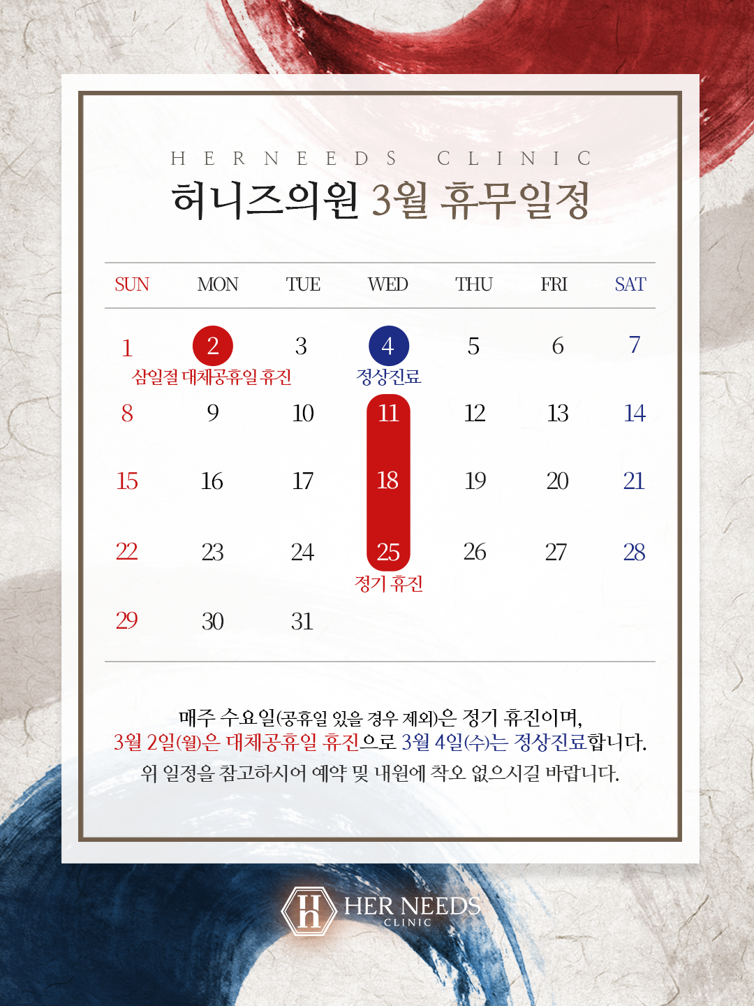 ●공휴일이 있는 주 수요일은 정상진료합니다:)