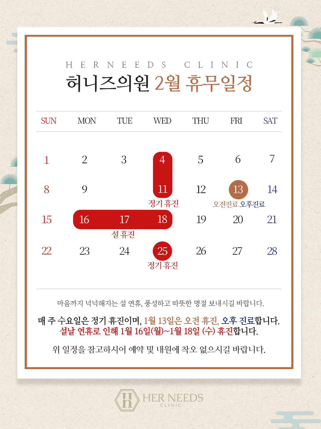 ●공휴일이 있는 주 수요일은 정상진료합니다:)