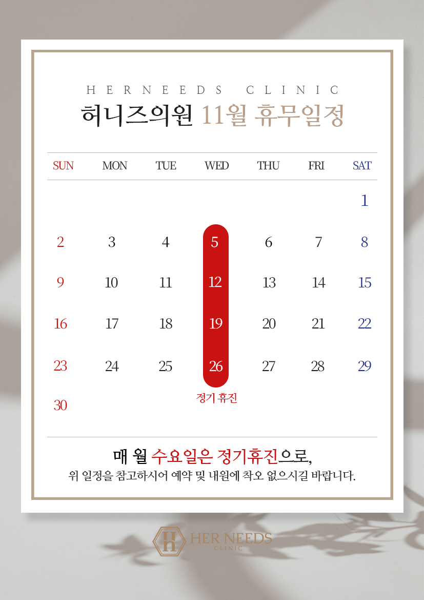 ●공휴일이 있는 주 수요일은 정상진료합니다:)